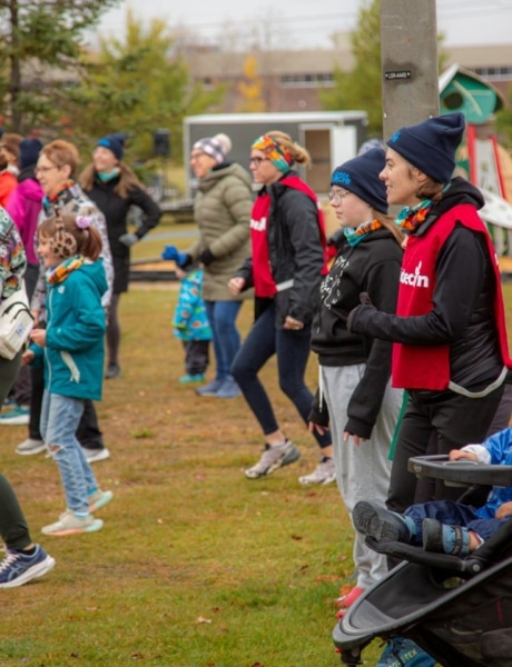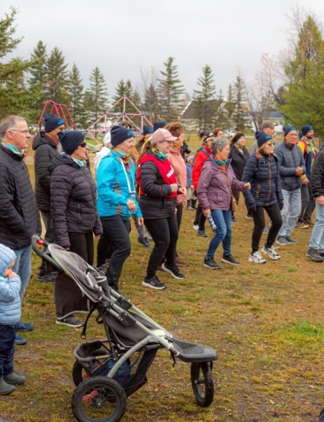 Malgré la pluie annoncée, c’est près de 100 marcheurs qui ont relevé le défi cette année. L’équipe des sports et loisirs a offert gratuitement des tuques et cache-cous à tous les marcheurs présents.