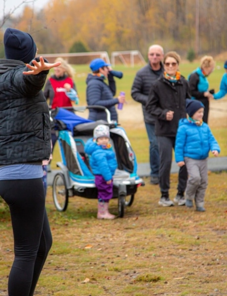 L’événement a débuté dès 9h45 avec un échauffement animé par Isabelle Larouche, entraîneure au Gym Oxygène + .