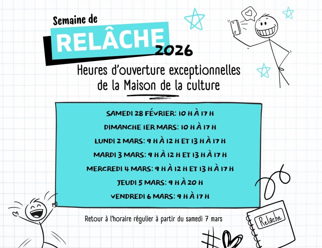 La Ville de La Sarre est ravie de vous présenter une semaine de relâche 2026 remplie d’activités divertissantes et enrichissantes pour toute la famille! Du 28 février au 8 mars, petits et grands pourront profiter d’une variété d’événements conçus pour égayer cette période de repos bien méritée. Que vous soyez amateur de plein air, passionné de culture ou à la recherche de moments de détente, notre programmation a quelque chose pour chacun.