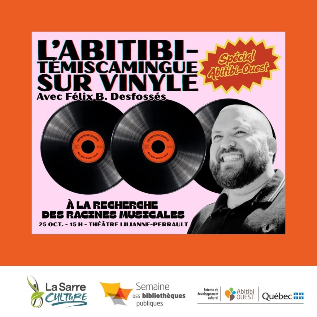 Conférence : L’Abitibi-Témiscamingue sur vinyle – À la recherche des racines musicales avec Felix B. Desfossés : Samedi 25 octobre, 15h