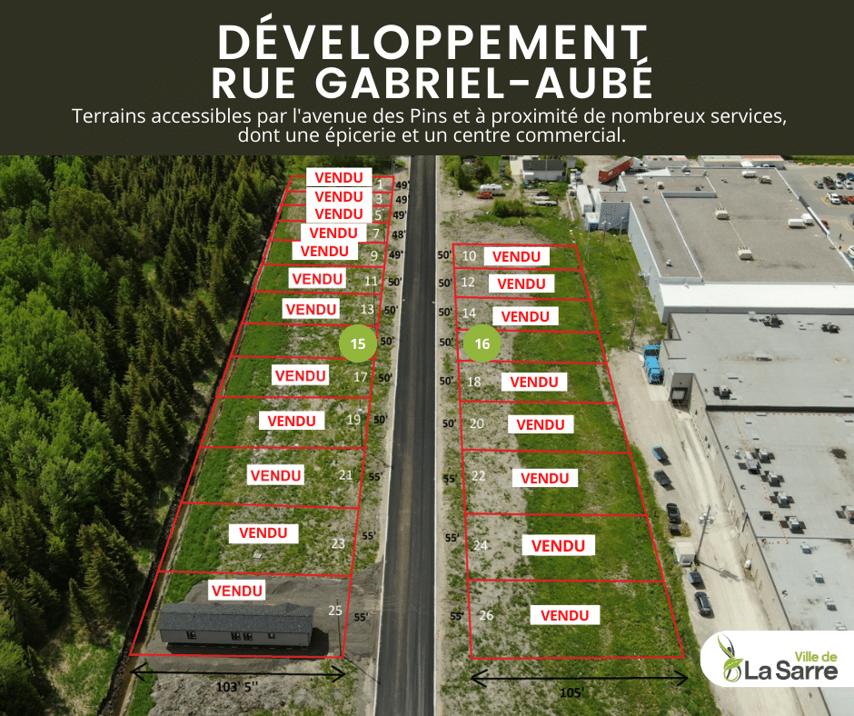 C’est votre chance ! Des terrains sont toujours disponibles dans le nouveau développement situé sur la rue Gabriel-Aubé.