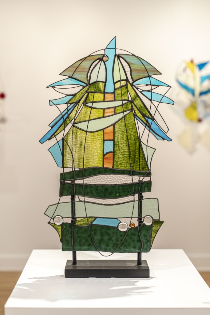 Originaire de Mont-Saint-Hilaire, l’artiste exprime son besoin de liberté et d’expansion dans ses créations. Fascinée par le jeu de la lumière, elle s’intéresse au vitrail depuis plusieurs années et travaille le verre de façon non conventionnelle. Détentrice d’un Baccalauréat en design industriel et ayant acquis plusieurs formations en arts, Lyne Noiseux intègre parfaitement sa passion et sa créativité à ses habiletés techniques. Sans plan de départ, elle crée des sculptures aériennes à partir de morceaux de verre qu’elle positionne en suivant son ressenti.